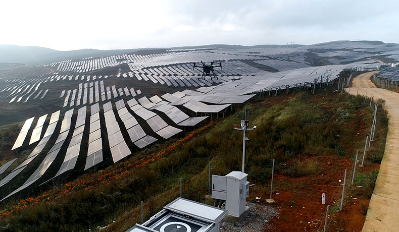 光伏電站是利用太陽能電池的光伏效應將太陽能轉化為電能的設施。光伏電站的建設可以分布在屋頂、土地等各種場地,其運行不產生任何污染,且維護成本較低,被視為清潔、高效的能源生產方式。太陽能是一種無盡的可再生能源,因此光伏電站是實現能源可持續利用的重要途徑。光伏電站的主要組成部分包括太陽能電池板(或稱為太陽能電池組件)、逆變器、支架、電纜以及其它電氣設備。在日照充足的情況下,太陽能電池板會接收太陽光并將其轉化為直流電,然后由逆變器轉換為交流電,供給電網或直接供用戶使用。該光伏電站位于貴州省,總裝機容量為70MWp,面對光伏面板的巡檢和故障識別處理需要自動化解決方案以提升運維效率。